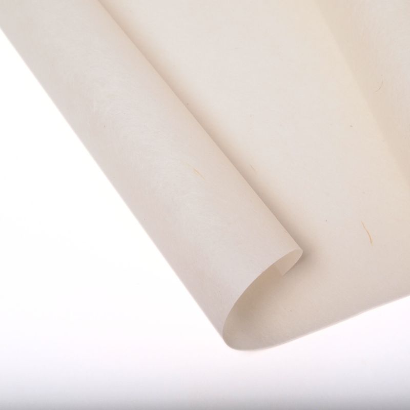 Idéal pour le katazome, la lithographie, la gravure sur cuivre, la sérigraphie et bien d’autres applications, ce papier est fabriqué à Tokushima, une région renommée pour sa production d’indigo. Pour la teinture, il est recommandé d’appliquer une solution de farine de konjac et de soja à l’aide d’un pinceau. Ce traitement renforce le papier et met en valeur l’intensité des couleurs.