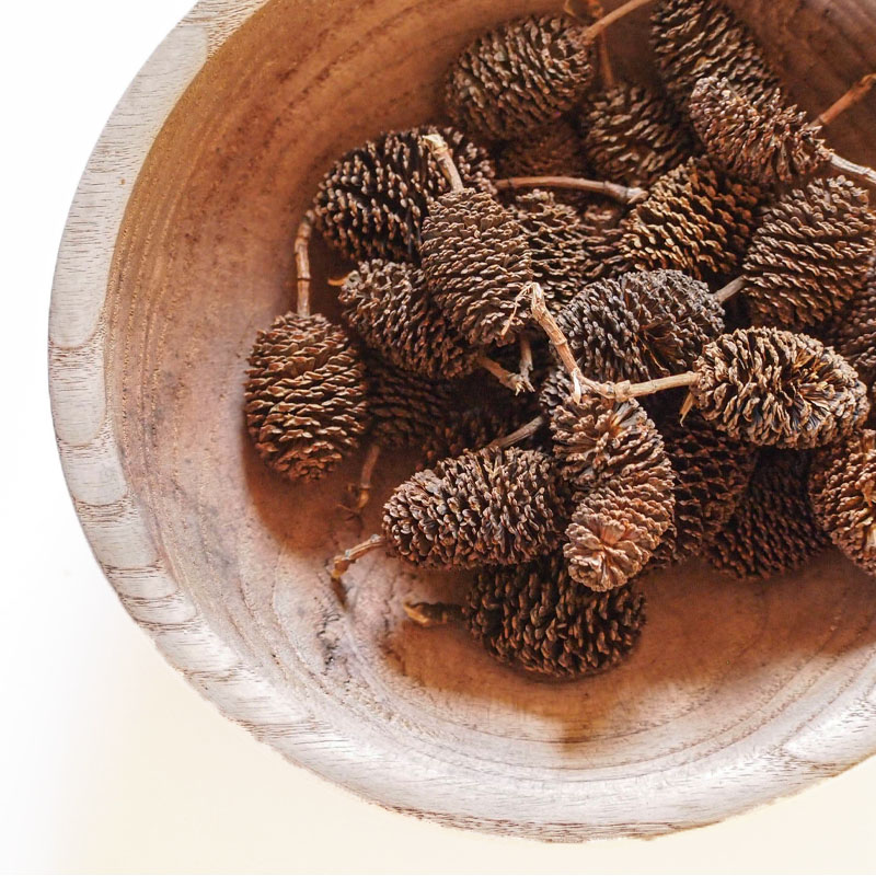 Comme pour nos aulnes européens ou ceux d’Amérique latine, les fruits mâles, des cônes comme l’écorce sont utilisés pour la teinture noire depuis toujours.