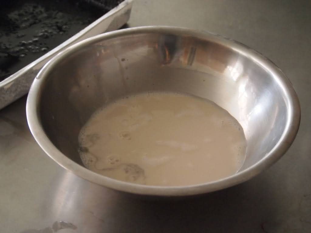 Tremper le tissu dans le jus de fèves pendant 5 minutes