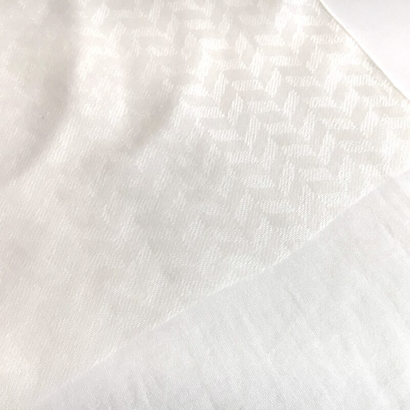 C’est un foulard vierge à teindre, fabriqué par des artisans ont des techniques de tissage originales à Kiryu au Japon. Kiryu est bien connu non seulement au Japon, mais aussi dans le monde en tant que ville du textile. Le fil de la trame contient le mélangé de soie et de cachemire.