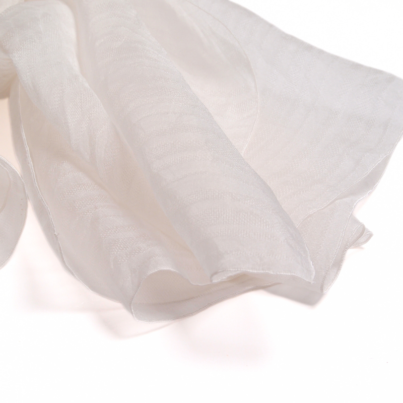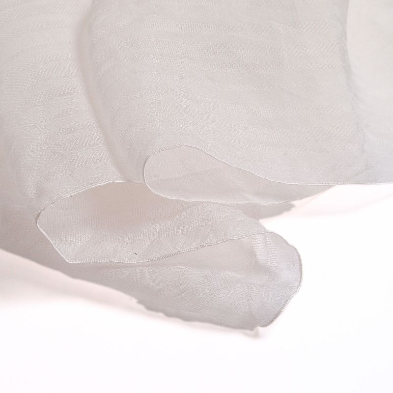 C’est un foulard vierge à teindre, fabriqué par des artisans dont les techniques de tissages sont originales et spécifiques de Kiryu au Japon. Kiryu est bien connue non seulement au Japon, mais aussi dans le monde en tant que ville du textile.