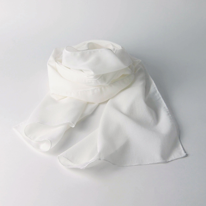 C’est un foulard en coton vierge à teindre, fabriqué par des artisans ont des techniques au Japon. Il a une texture très souple et a un côté “Elastique” qui est très rare entant qu’un coton , il est tissé comme “Chirimen”.