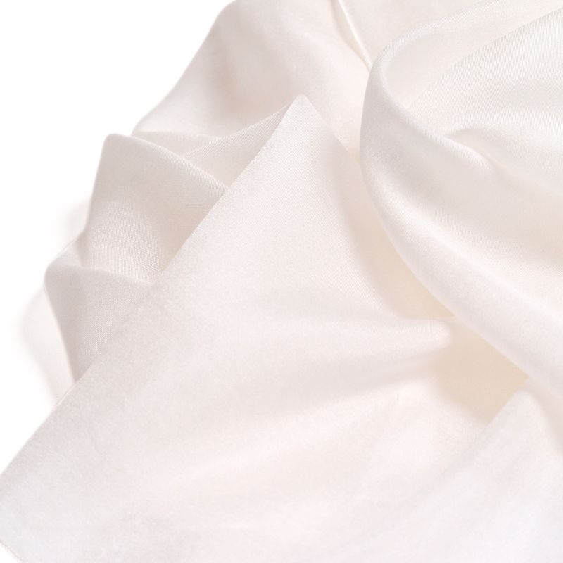 Ce foulard est tissé avec des fils de trame en soie extrêmement fins de type 2/400, environ deux fois plus fins que les fils de soie traditionnels.