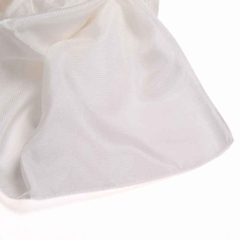 Ce foulard vierge à teindre est fabriqué par des artisans maîtrisant les techniques de tissage traditionnelles japonaises. Avec son motif rayé et sa transparence obtenue grâce à l’utilisation de fils très fins, il est parfait pour la teinture.