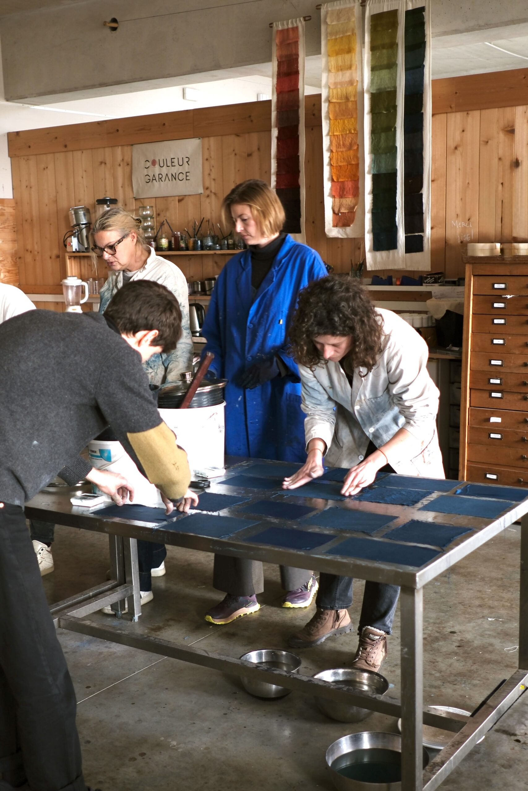 La formation intègre également une première approche de l’indigo, avec le montage d’une cuve et la réalisation de teintures sur différentes fibres.