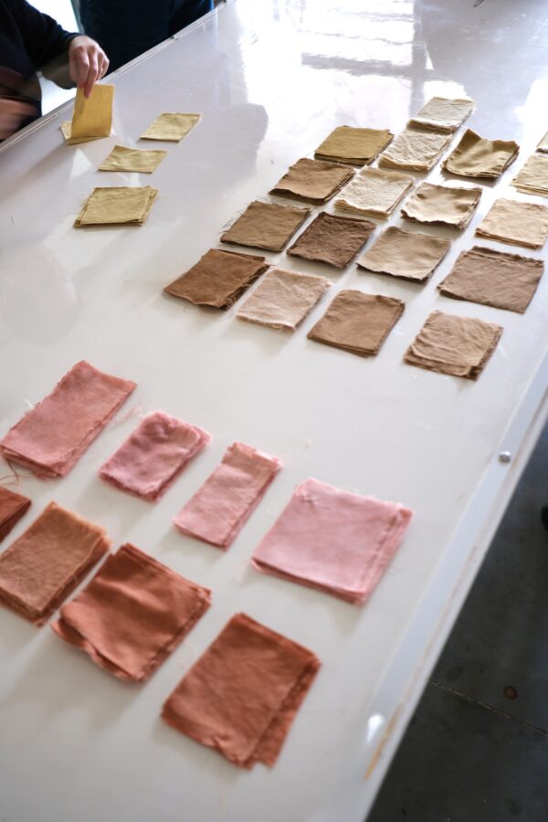 Couleur Garance propose un service artisanal de teinture naturelle sur mesure, incluant lavage, mordançage et teinture pour des créateurs, designer.euse.s ou marques.