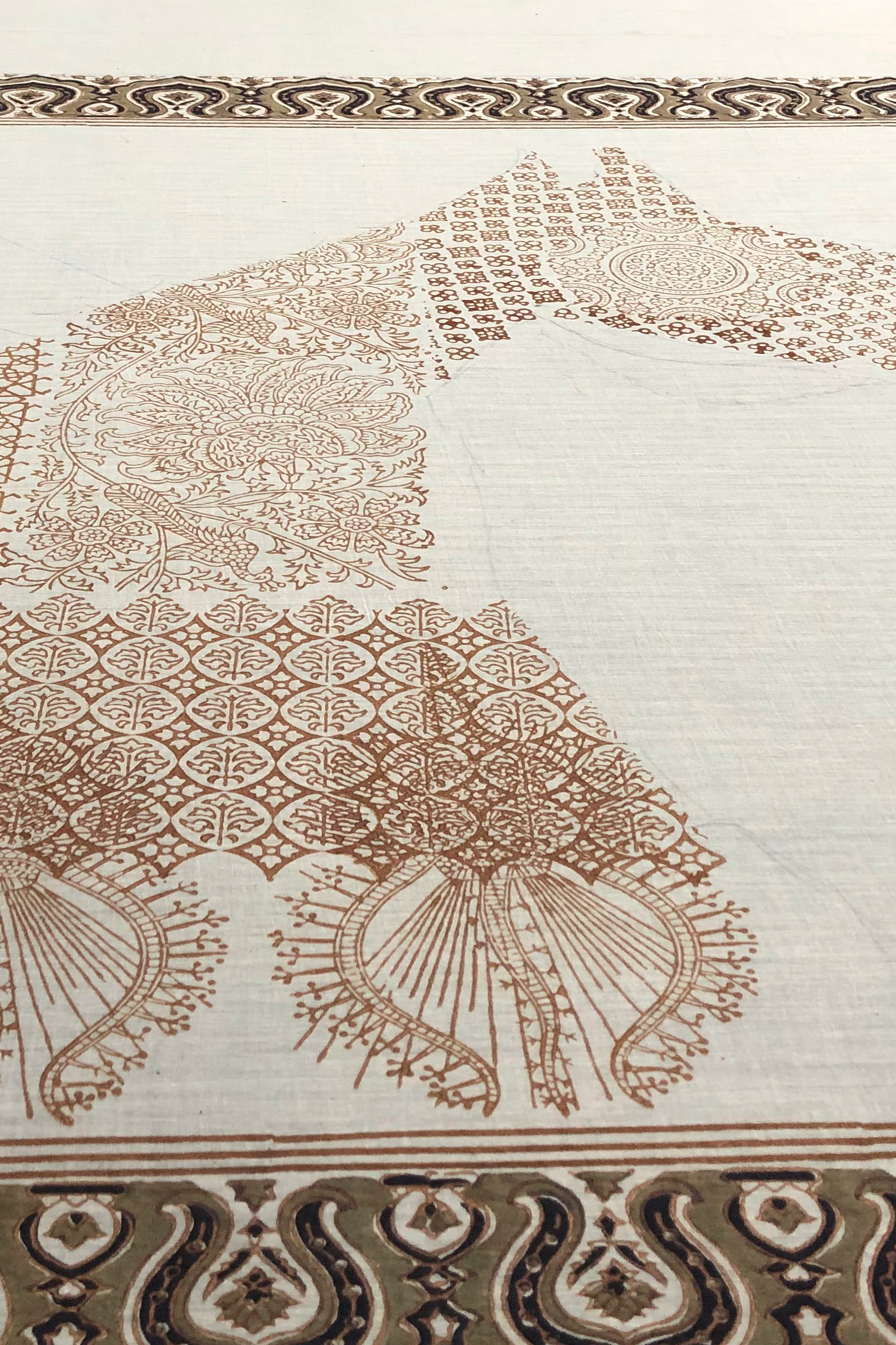 L’impression Ajrakh est un art ancestral, perpétué depuis plus de 4000 ans dans les régions du Sindh et du Gujarat. Reconnue pour ses motifs complexes, à la fois géométriques et floraux, cette méthode traditionnelle repose sur des techniques précises et l’usage de pigments naturels, avec une place centrale accordée à l’indigo, emblématique des teintes bleues des textiles Ajrakh. Enracinée dans l’histoire et la culture, cette pratique est considérée comme l’une des plus anciennes et raffinées pour teindre et imprimer les tissus.