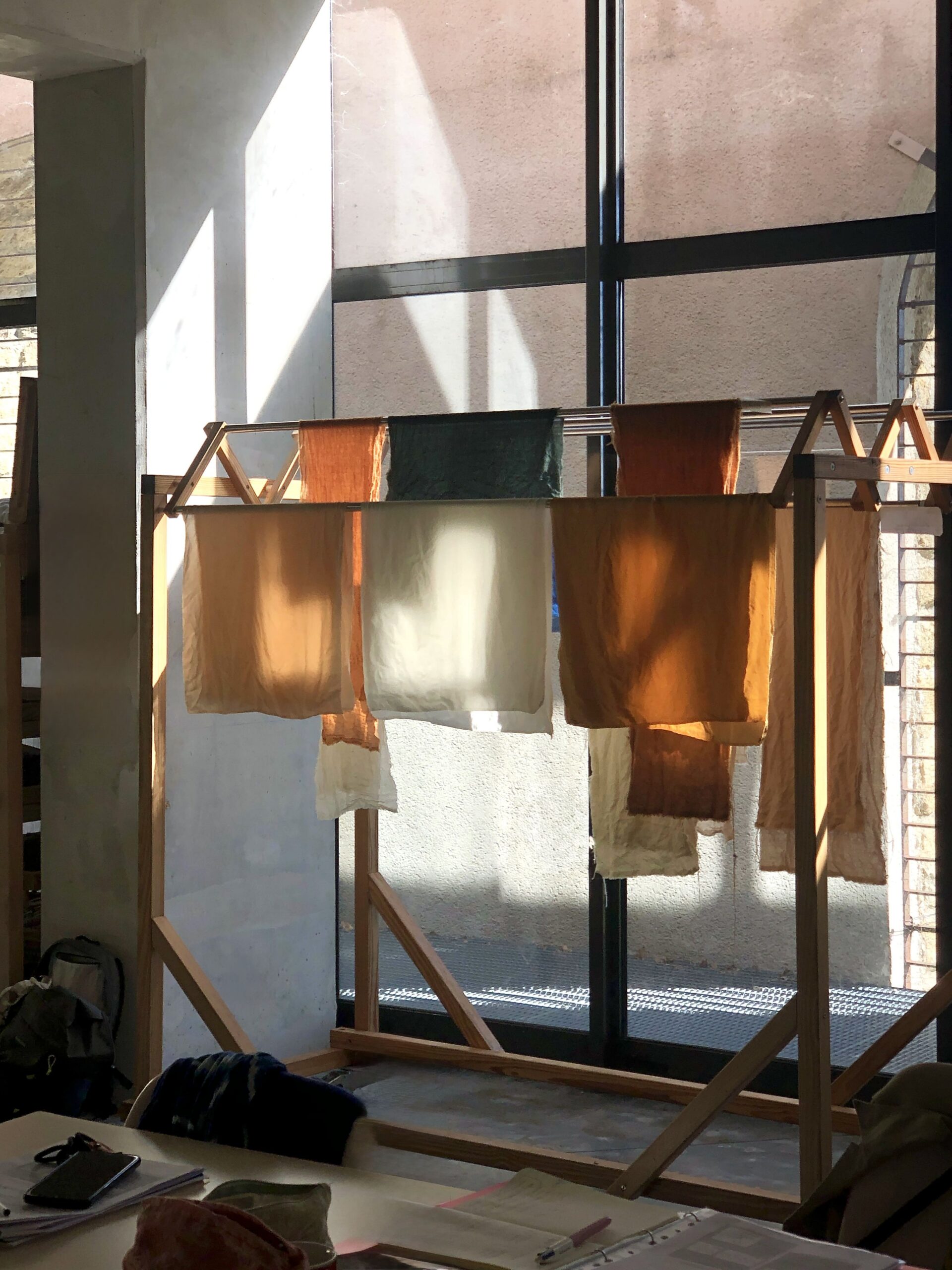 Couleur Garance propose un service artisanal de teinture naturelle sur mesure, incluant lavage, mordançage et teinture pour des créateurs, designer.euse.s ou marques.