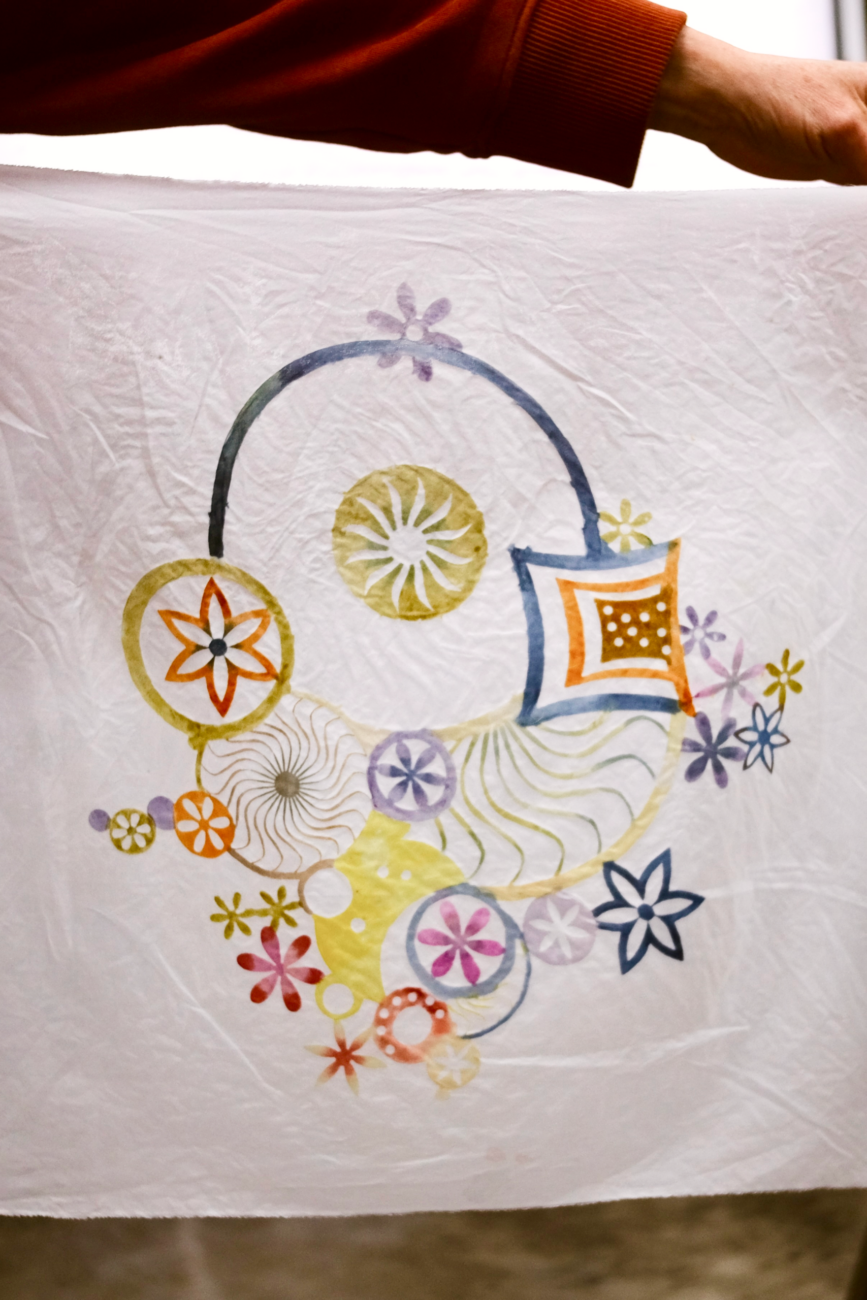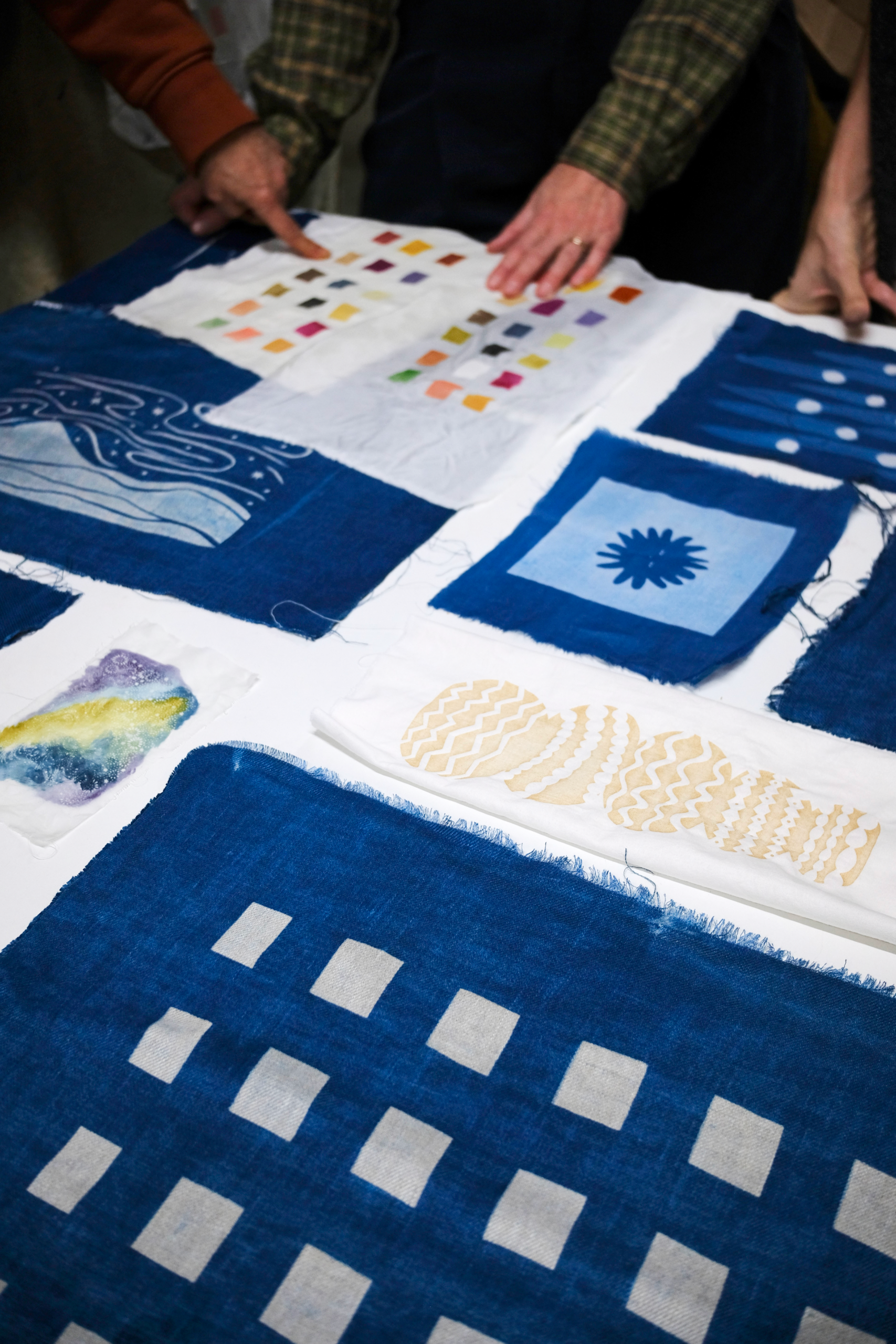 - Explorer différentes manières d’appliquer la couleur et des motifs en réserve sur textile : pigments, laques, teinture indigo et Norizome