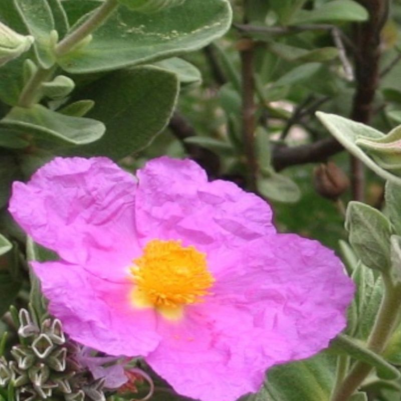 Le ciste cotonneux est un arbrisseau vivace méditerranéen à feuillage persistant, il produit des fleurs roses à cinq pétales au parfum délicat et à l’aspect légèrement chiffonné. Utilisé en médecine traditionnelle et en phytothérapie, ses feuilles permettent d’obtenir un colorant jaune, tandis que sa résine sert de liant pour la fabrication de peintures et de vernis.