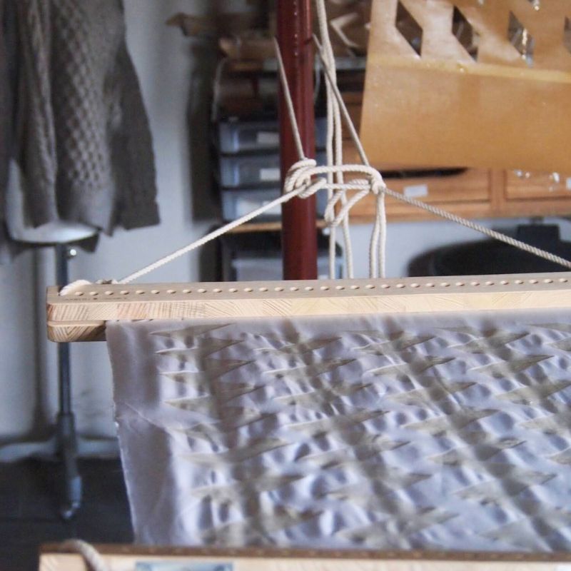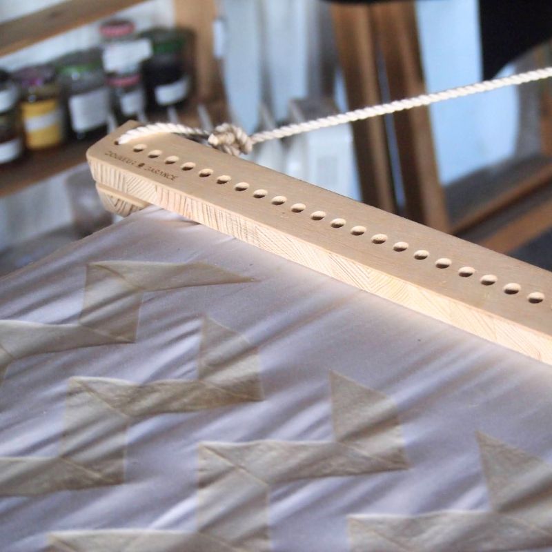 Le harigi est un outil de teinture conçu pour maintenir le tissu bien tendu pendant les opérations de teinture ou d’impression textile. En maintenant le textile fixé et étiré, il réduit l’apparition de plis et de déformations, ce qui favorise une teinture uniforme sans taches ni irrégularités.