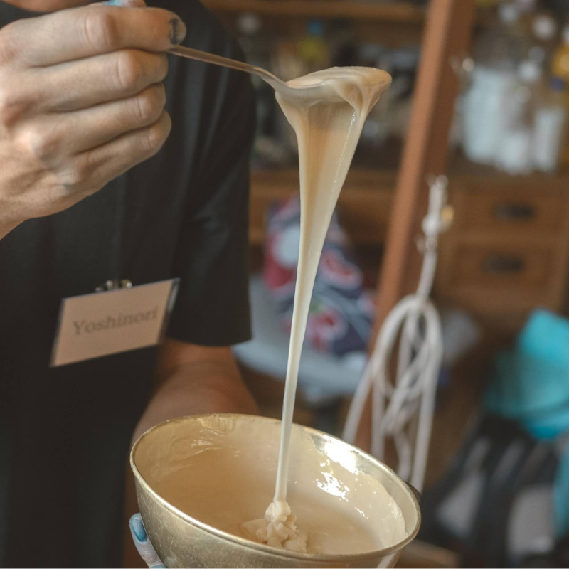 Le Katanori est une pâte de réserve traditionnelle japonaise utilisée dans la technique du Katazome, une méthode d’impression au pochoir sur textile. Épais et résistant à l’eau, ce mélange à base de riz permet de créer des motifs précis en empêchant la teinture, notamment l’indigo, de pénétrer certaines zones du tissu.