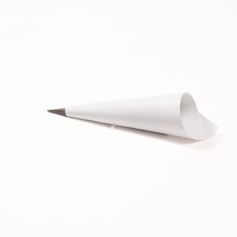Le “Noritsutsu” est un cône en papier que l’on applique sur le bout du Papier triangle pour tsutsugaki, dans lequel on remplit la pâte katanori. Il est utilisé comme un stylo ou un pinceau pour appliquer la pâte katanori directement sur le tissu, permettant ainsi de dessiner des motifs détaillés. Une fois le dessin terminé et la pâte katanori séchée, le tissu est plongé dans une teinture. La pâte empêche la teinture d’atteindre les parties du tissu où elle a été appliquée, créant ainsi un motif en réserve.