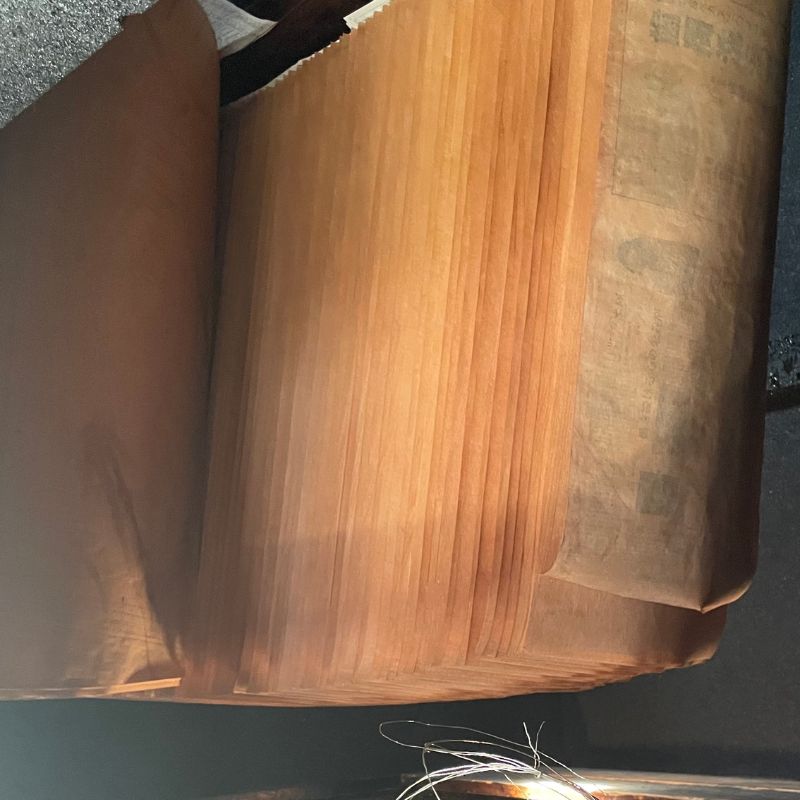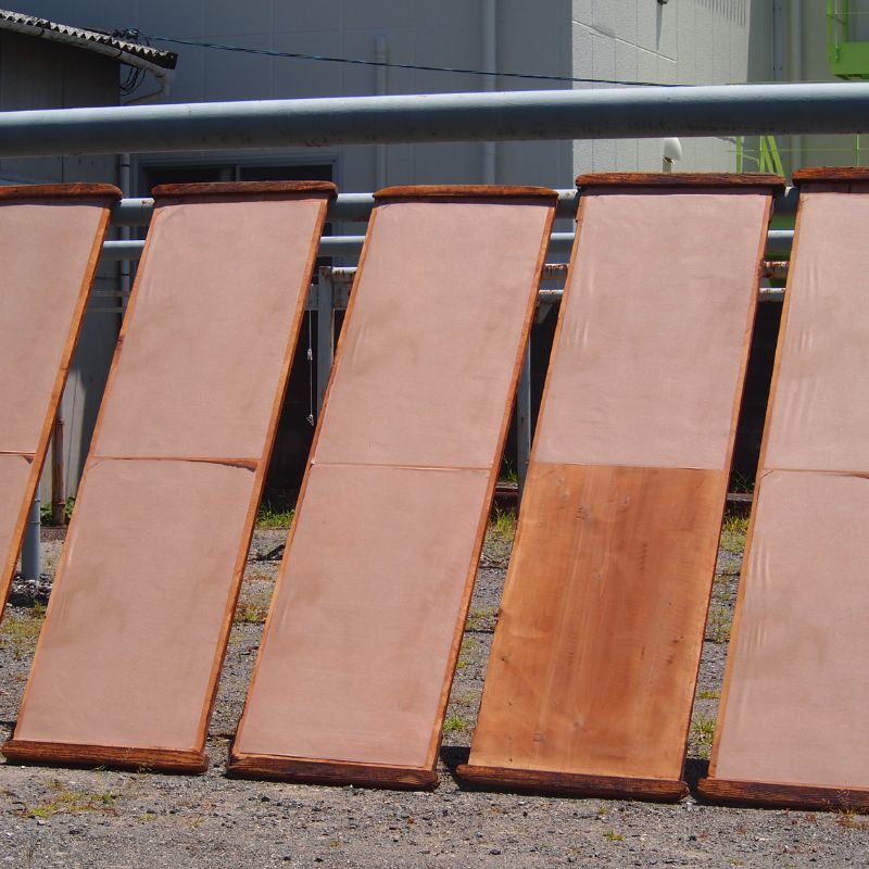 Les feuilles de shibugami proposées ici sont fabriquées à Suzuka, au sein du dernier atelier encore en activité au Japon spécialisé dans la production traditionnelle de shibugami. Cet atelier perpétue les techniques de préparation du papier washi enduit de kakishibu, nécessaires à la réalisation de pochoirs destinés à la teinture au pochoir.