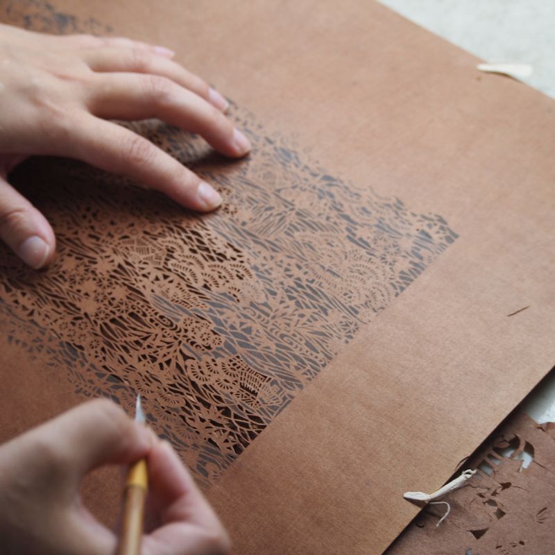 L’usage de pochoirs en shibugami remonte à plusieurs siècles au Japon, parallèlement au développement de la teinture des kimonos et des textiles décoratifs. Cette tradition est associée à l’Ise-katagami, issue de l’ancienne province d’Ise (actuelle préfecture de Mie), dont les villes situées autour de Suzuka ont constitué des centres historiques de fabrication de pochoirs.