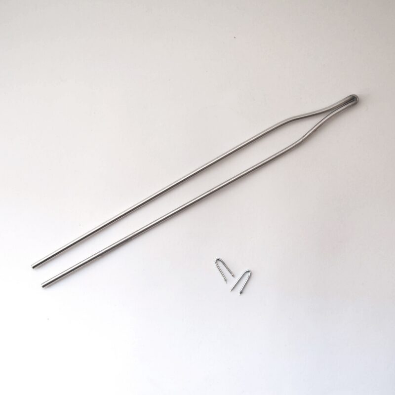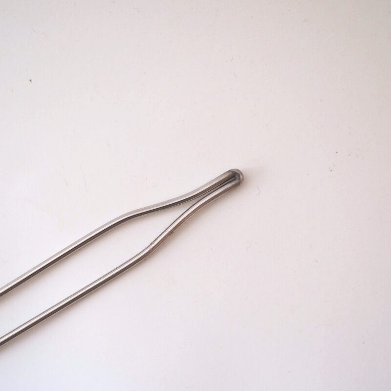 Cette fourche métallique d’une vingtaine de centimètres de long se fixe sur un métier à shibori et permet de bloquer l’extrémité nouée du fil. Ainsi il est aisé de maintenir la tension et d’effectuer les ligatures sur le tissu. Cette fourche permet donc de créer des motifs appelés Makiage shibori par ligatures et enroulement.