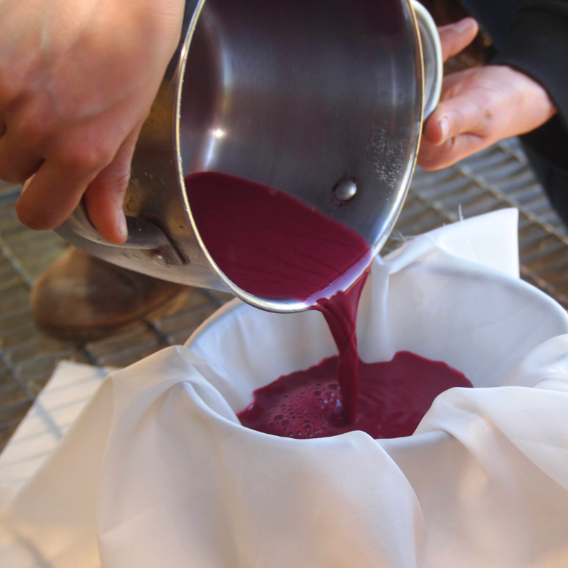 Le tissu filtrant est un tissu au tissage spécifique pour les filtrations de petites particules. Il permet une filtration très fine des bains de plantes pour n’en récupérer que le bain coloré mais il est surtout efficace pour la filtration des pigments.