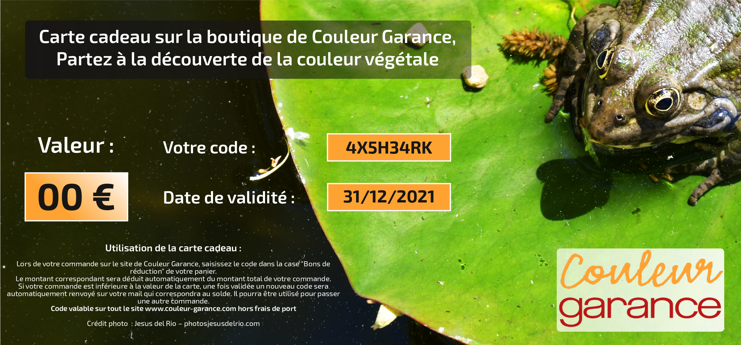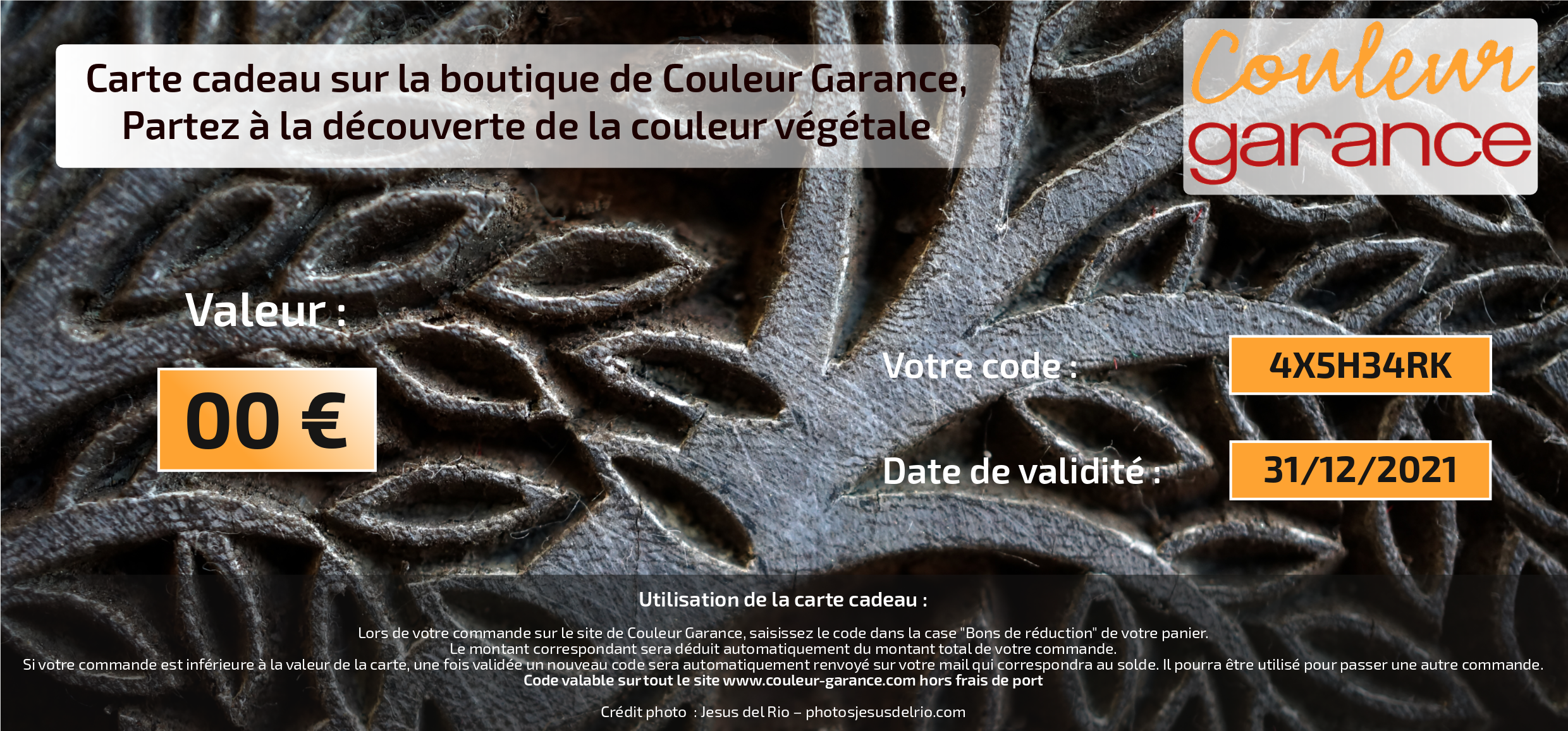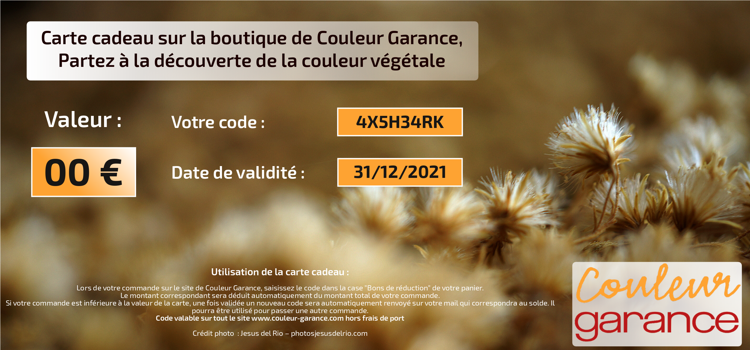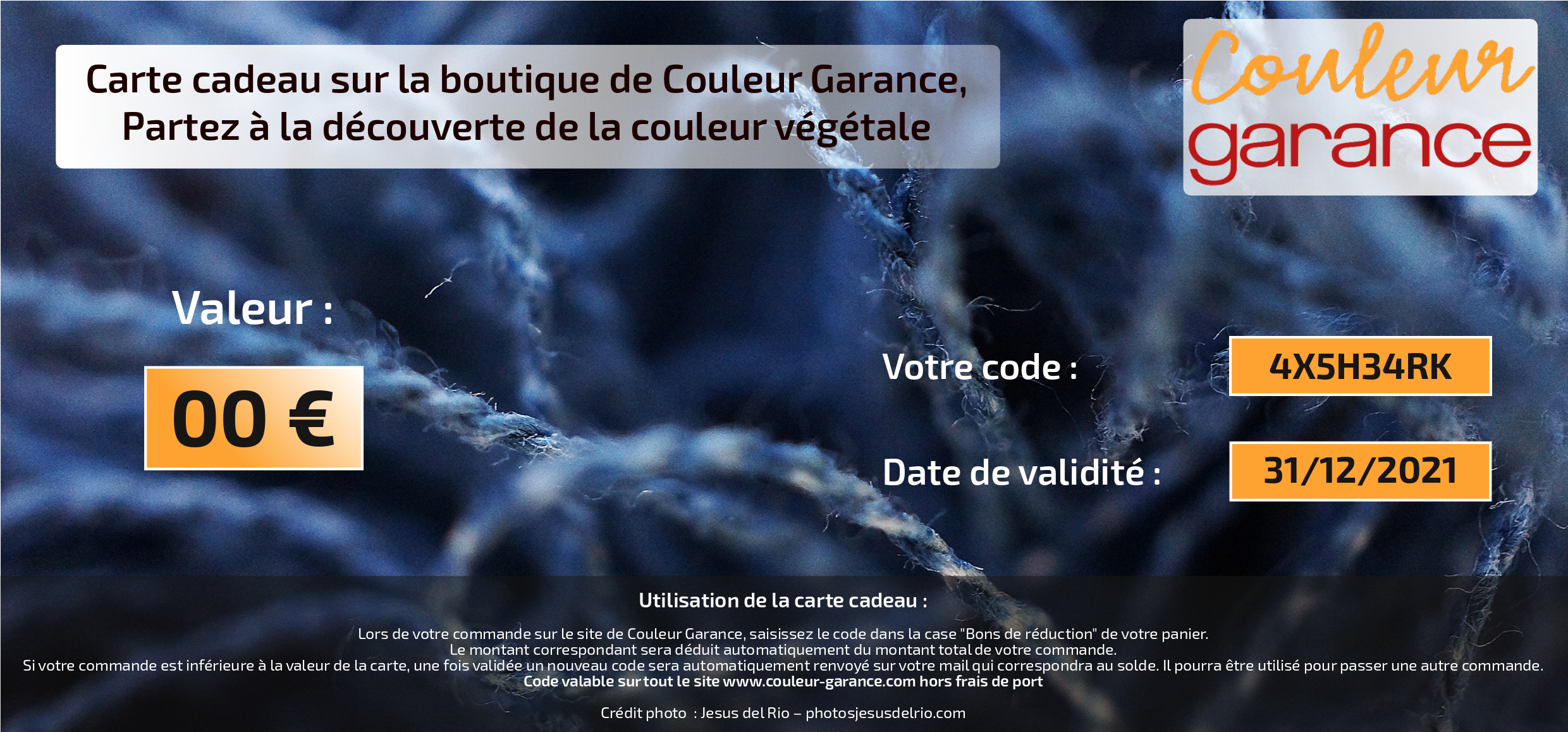 Elles peuvent être utilisées en une ou plusieurs fois à hauteur totale de leur montant, valable sur tout le site Internet www.couleur-garance.com, y compris sur les promotions, offres spéciales, soldes… pendant 1 an à compter de sa date d’émission.