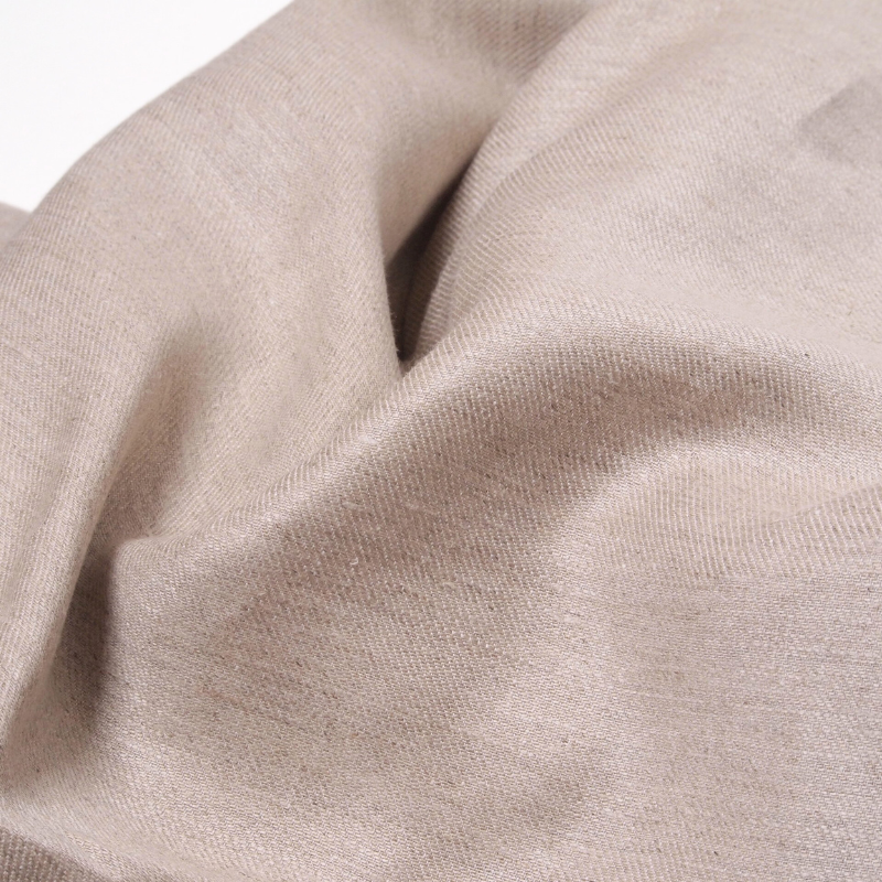 Ce tissu en lin a de la tenue, ce qui le rend parfait pour confectionner des vêtements et des articles de décoration intérieure. La structure fibreuse du lin est creuse, semblable à une paille, ce qui lui confère une excellente capacité d’absorption et un séchage rapide. Comme il s’agit d’un tissu naturellement grisâtre propre au lin, il prend une teinte profonde lorsqu’il est teint à l’indigo, par exemple.