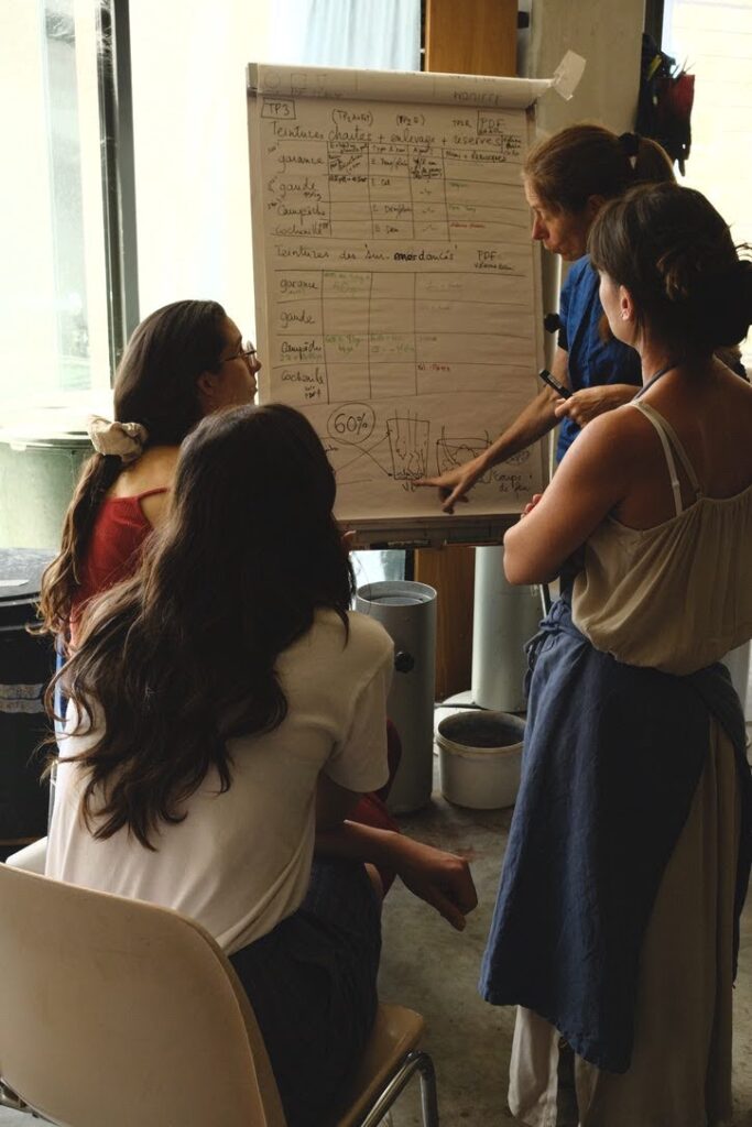 Au fil des journées, les discussions ont glissé des gestes aux idées. Comment adapter certaines méthodes ici, en France, sans perdre la justesse du geste ? Comment enrichir nos pratiques respectives entre deux cultures textiles, deux façons d’aborder la teinture naturelle ?