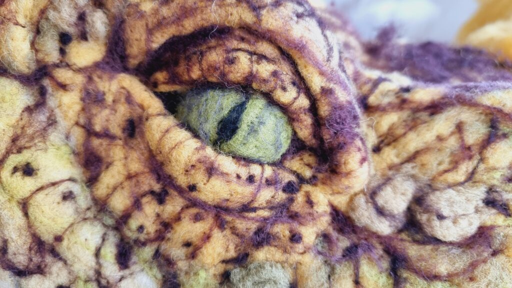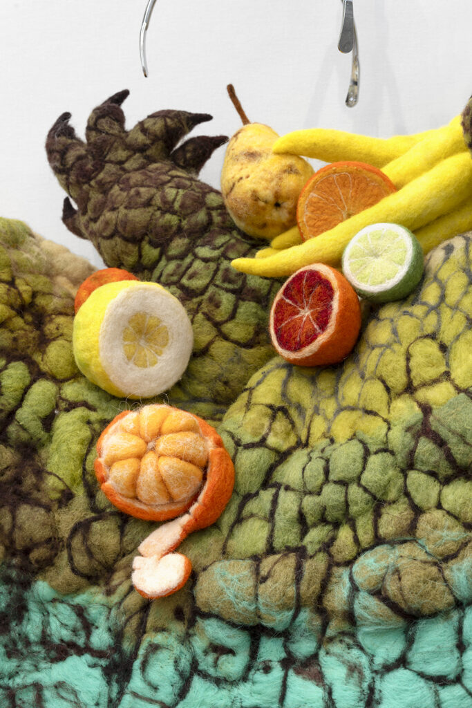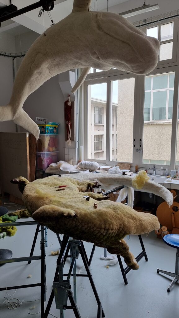 Les échanges, les essais et les recherches menés à l’atelier ont peu à peu donné naissance à une palette de tons terreux et neutres, développée à Couleur Garance. Ces teintes sont devenues la base d’un travail sur la texture de la peau du crocodile, au cœur de la pièce Do not swallow.