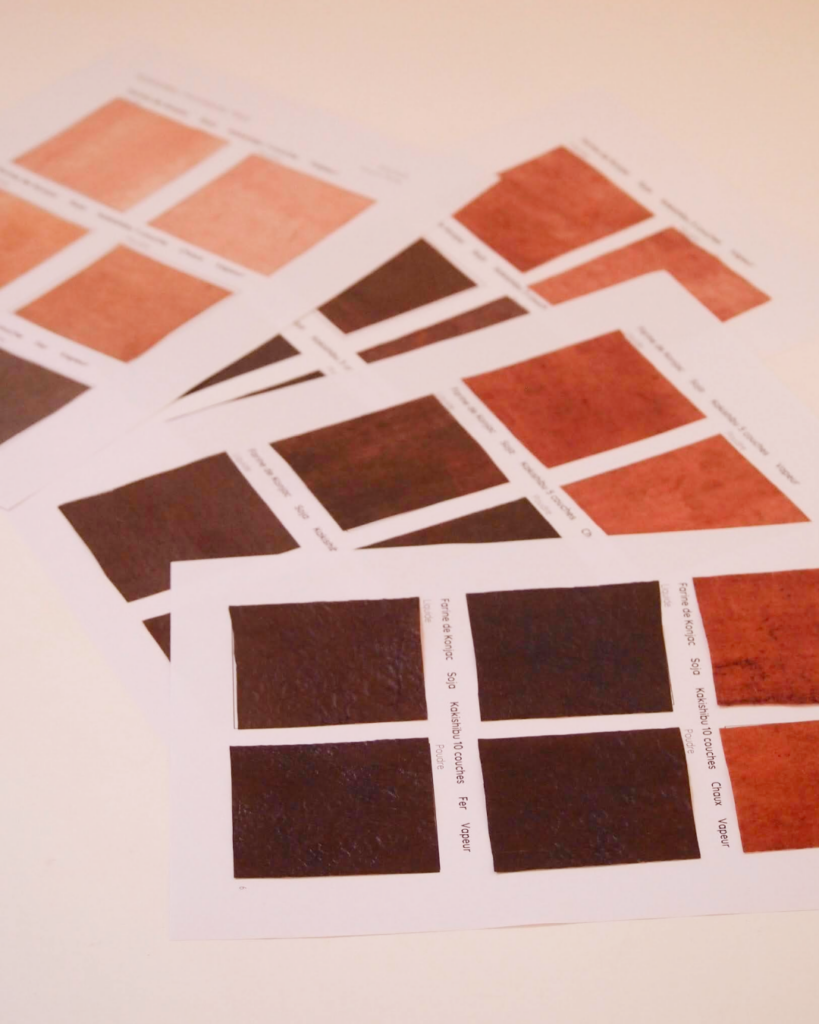 Issu de la fermentation de kakis astringents non mûrs, le kakishibu est profondément ancré dans les pratiques artisanales japonaises. À la fois teinture, traitement de surface et agent de protection, il illustre une approche ancienne où la couleur n’est jamais dissociée de la fonction.