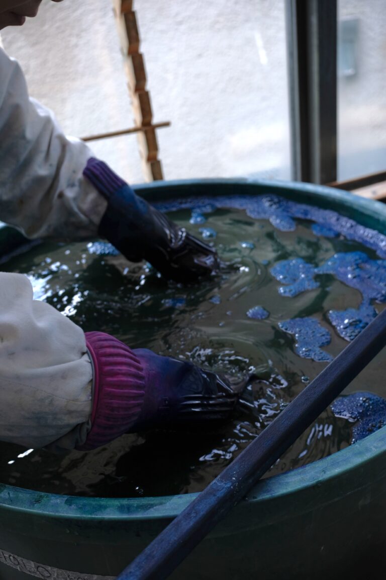 - Mordançage : fixation des couleurs naturelles issues de plantes sur les fibres pour une meilleure tenue et intensité des teintes.